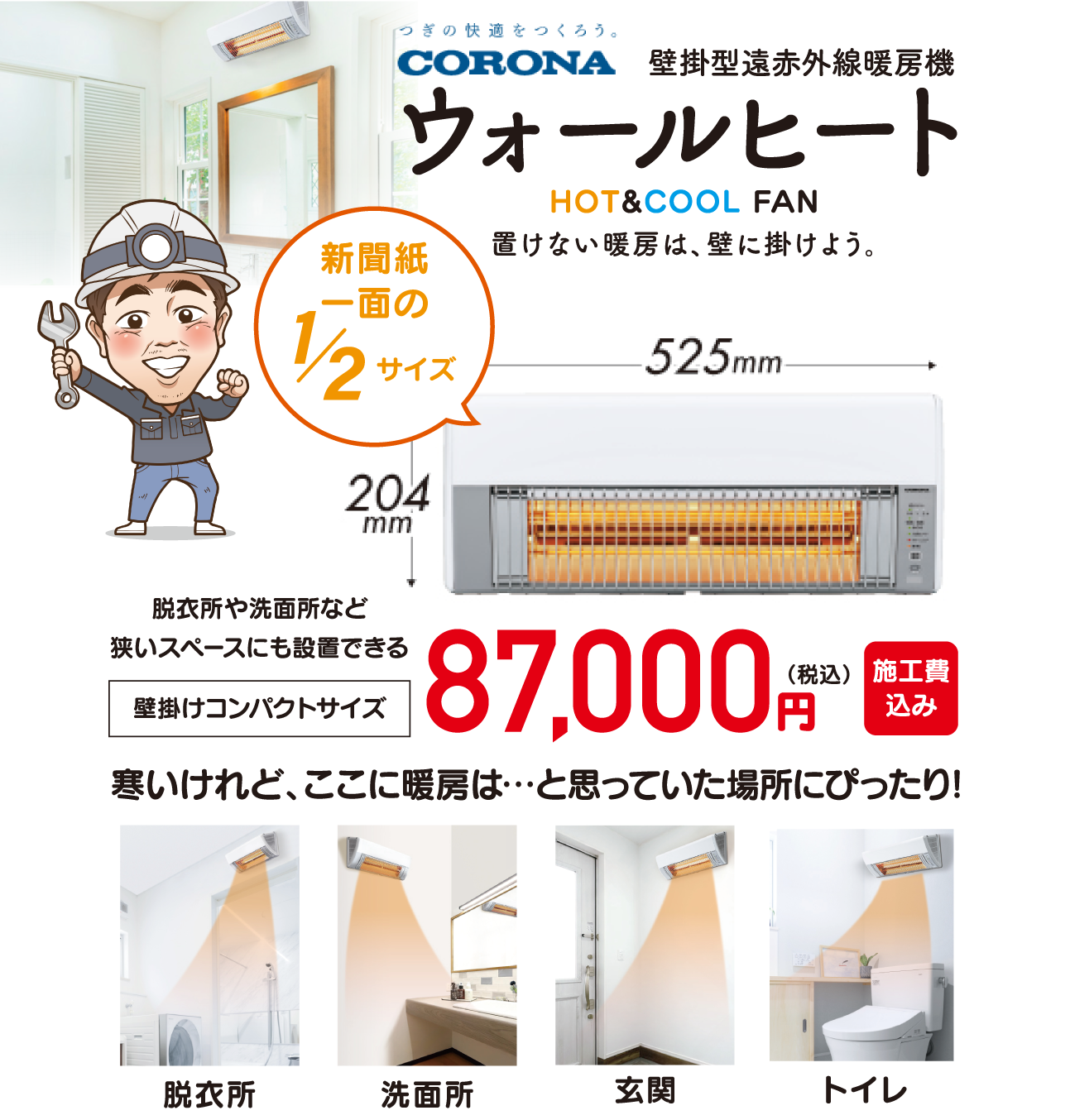 スイッチONですぐにあったか!ヒートショック予防にも。